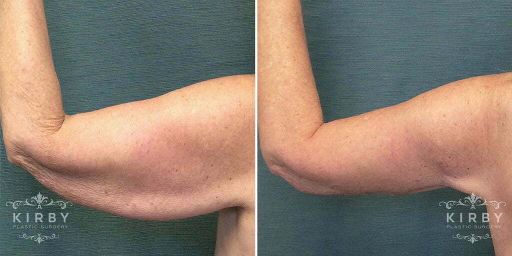 A 56 year-old female with one breastfed child underwent multiple bariatric procedures, including a lap band in 2003 as well as a duodenal switch in 2013. She had lost 85 pounds since the duodenal switch in 2013. She wanted to lose more weight, however, she said that her primary care provider told her this was not wise. She had been at her current weight for 6-7 months when she chose to undergo Brachioplasty, an upper arm lift.