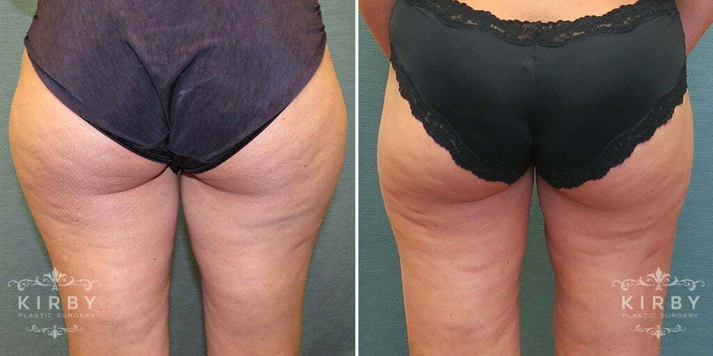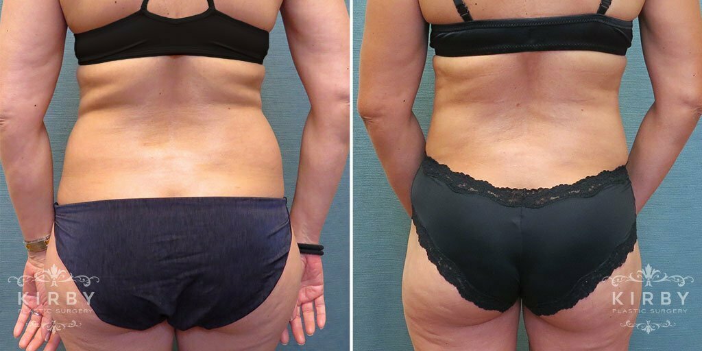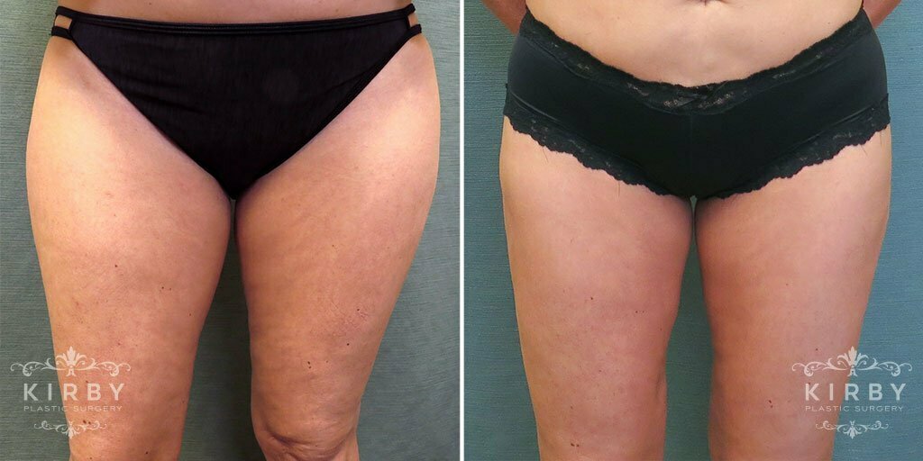 A 49 year-old female said that her family tends to be “pear-shaped” and now that she is having hormone changes associated with menopause, she has noticed fat deposits in places she doesn’t like. She was treated with power-assisted liposuction of the abdomen, flanks, thighs (inner & outer).