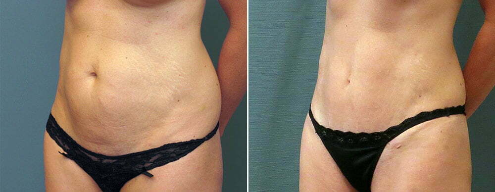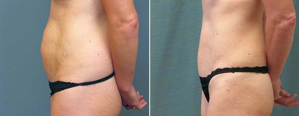 This 40 year-old patient, while already quite lean, had experienced some skin and muscle laxity on her lower belly as well as excess fat on her hips and flanks following three pregnancies. During her consultation, Dr. Kirby recommend that a mini-abdominoplasty coupled with liposuction would likely address her concerns with a less extensive surgery and recovery. The patient underwent these procedures with Dr. Kirby, and is thrilled with her firmer, flatter abdominal shape.