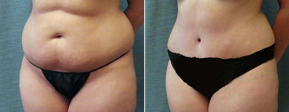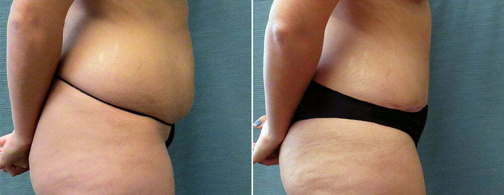 26 year-old female, with 1 pregnancy, is bothered by fullness of the abdominal wall after having children. She underwent full abdominoplasty with rectus muscle plication and power-assisted liposuction of the flanks.