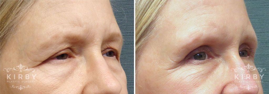 A 59-year-old female with heavy upper eyelids underwent bilateral upper blepharoplasty.